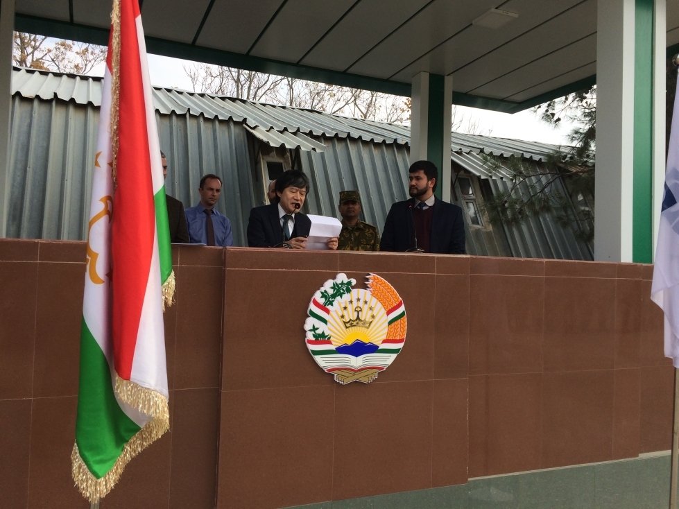 大使は現地で、司令官を務めるタイルゾーダ・ディルショッド将軍の出迎えを受け、PFCBのメイン・ドナーとなるドイツのマイク・シドラク一等書記官とともに、センターの広場に集合した訓練生に訓示を与え、その後訓練を視察。
