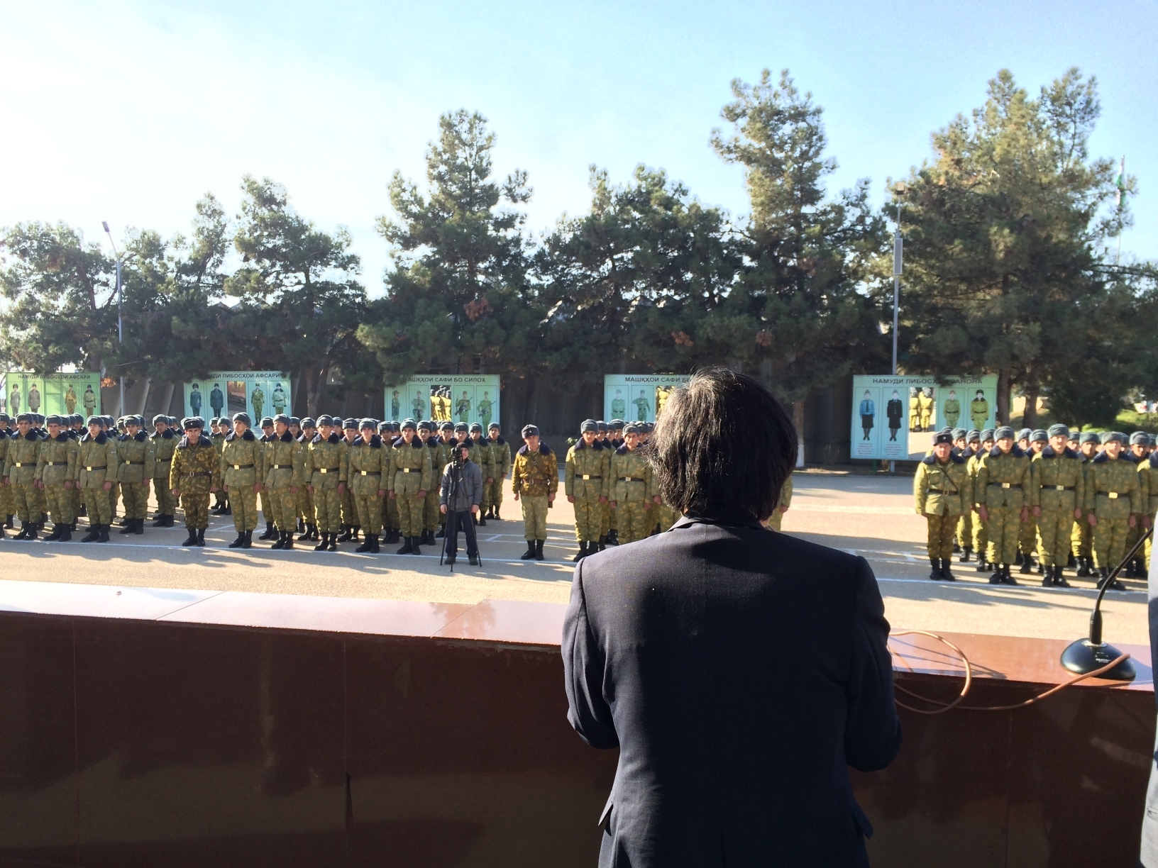 大使はスピーチで「訓練で最も重要になるのは『訓練は実戦のごとく、実戦は訓練のごとく』を徹底することだ。その点で、アフガニスタンに接するこのハルカイヨでの訓練は臨場感に溢れており、理想的な訓練を行うことが出来る。訓練の成果を存分に生かし、タジキスタンのためのみならず、全世界にとって重要なタジク・アフガン国境をしっかりと守って欲しい」と述べました。