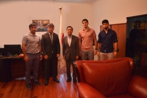 8月10日、宮下大使は、柔道タジキスタン代表(73kg級)として東京オリンピックに出場したソモン・マフマドベコフ選手らの表敬を受けたところ、概要は以下のとおりです。1 冒頭、宮下大使から、ソモン・マフマドベコフ選手の今次訪問を歓迎するとともに、同選手を含むタジキスタン代表団の東京オリンピックにおける活躍への称賛を表明しました。また、日本はタジキスタンにおける柔道の発展に協力する準備があり、柔道を通じた日・タジキスタン友好関係の一層の発展を期待する旨述べました。
